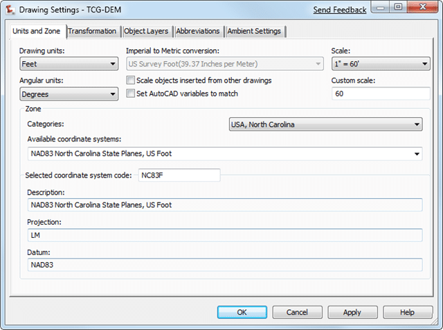 - Make sure the correct coordinate system is assigned to your drawing. Settings tab, right-click / Edit Drawing Settings, Units and Zone tab.