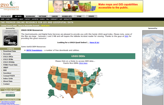 - Go to the Geo Community DEM download page: http://data.geocomm.com/dem/demdownload.html